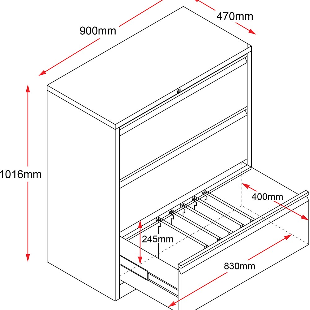 Go Steel Lateral Filing Cabinet 3 Drawer 1016Hx900Wx470mmD White