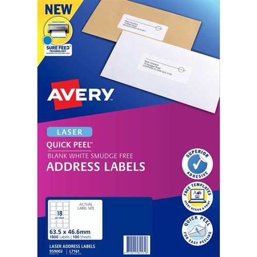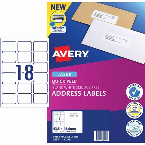 Avery Address Laser Labels 18UP L7161 63.5 x 46.6mm White 100 Sheets