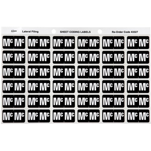 Avery Alphabet Coding Label Mc Side Tab 25x38mm Wht Blk Pack of 180