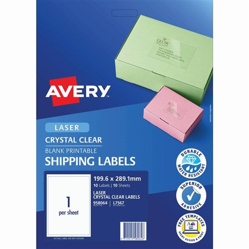 Avery Crystal Clear Laser Address Label 1UP 199.6x289.1m 10 Sheets