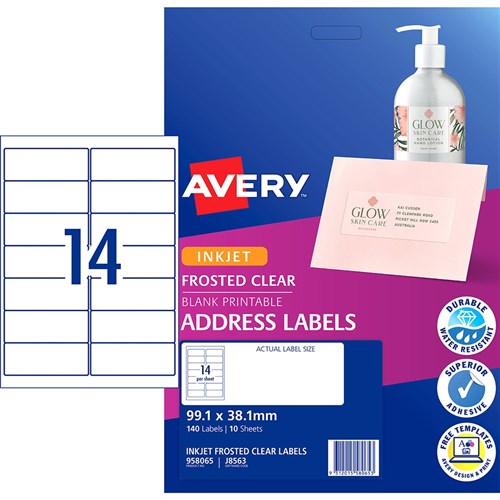Avery Frosted Clear Inkjet Label 14UP 99.1x38.1mm 10 Sheets