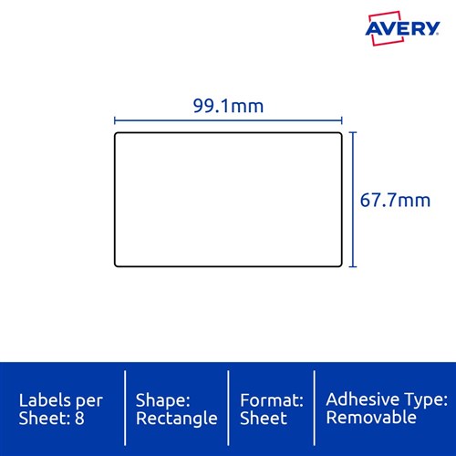 Avery Heavy Duty Removable Laser Labels L4715 99.1 x 67.7 White 8UP, 20 Sheets