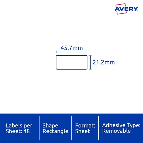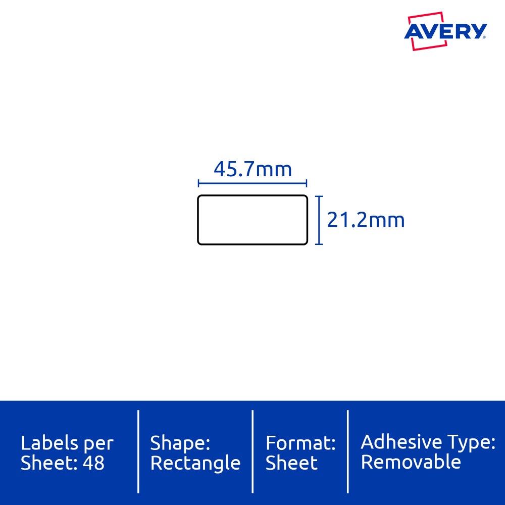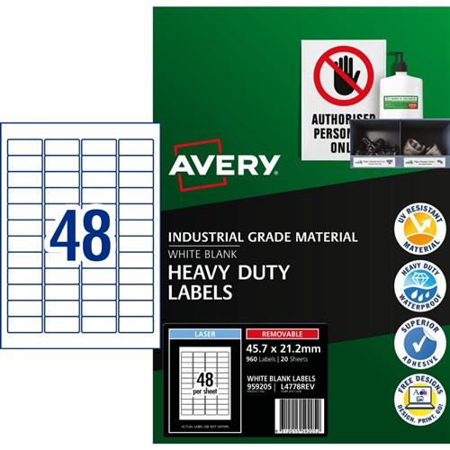 Avery Heavy Duty Removable Laser Labels L4778 45.7x21.2mm White 48UP 20 Sheets