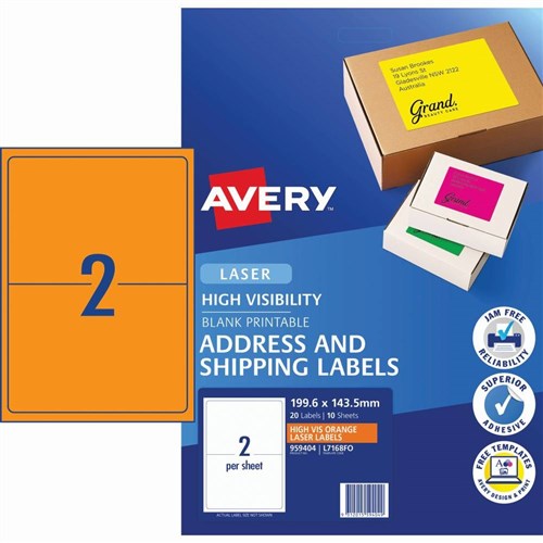 Avery High Visibility Shipping Laser Labels L7168FO 199.6x 143.5 Orange 2UP 10 Sheet