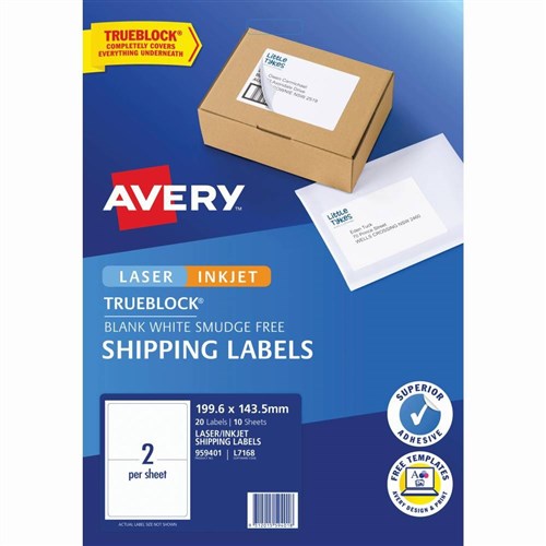 Avery Internet Shipping Laser & Inkjet L7168 199.6x143.5mm White 2UP 10 Sheets