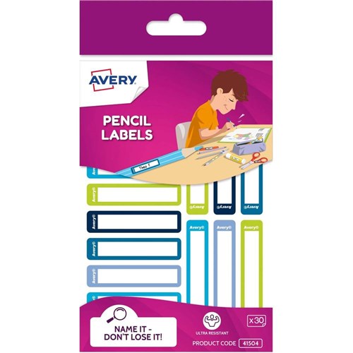 Avery Kids Pencil Labels 30 Assorted Labels Ultra Resistant 52 x 12 mm