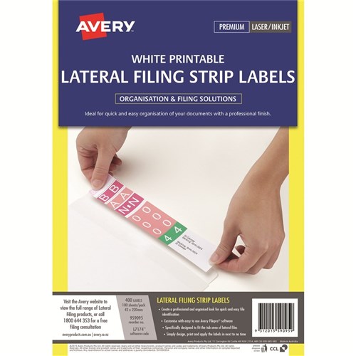 Avery L7174 Lateral Filing Labels A4 42x200mm 4 Per Sheet White Box of 400
