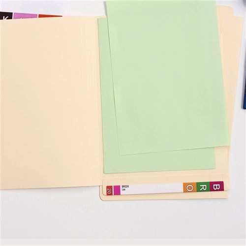• Manufactured from strong weight board with a reinforced side tab on which you can label colour code and file title labels.