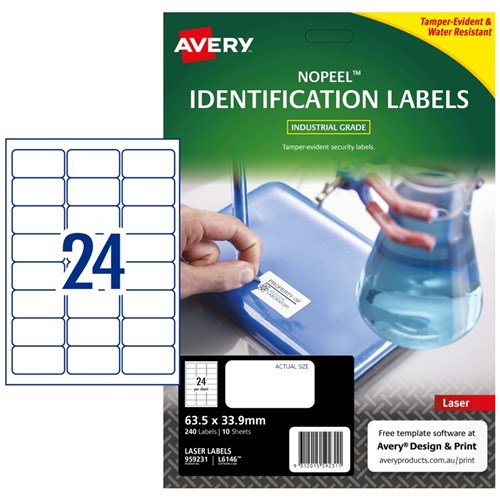 Avery NoPeel Laser Labels L6146 63.5 x 33.9mm White 24UP 10 Sheets