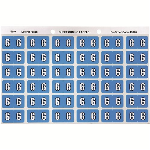 Avery Numeric Coding Label 6 Side Tab 25x38mm Blue Pack of 180