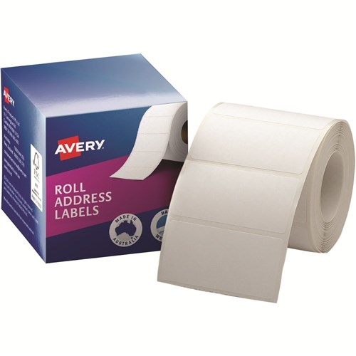 Avery Permanent Address Labels 70x36mm Roll Write On White Box of 500