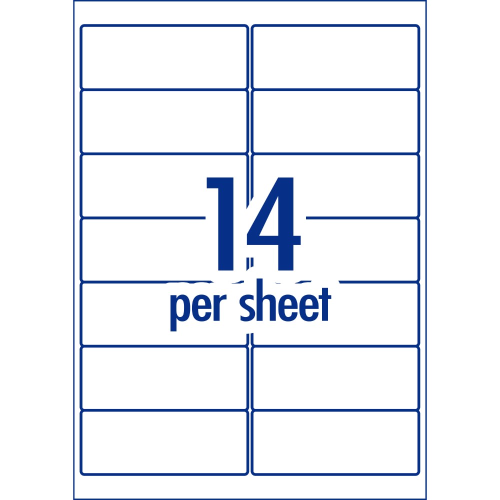 • Size: 99.1 x 38.1 mm, 50 sheets, 14 labels per sheet (14UP).