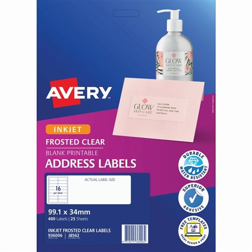Avery Frosted Clear Inkjet Label 16UP 99.1x34mm 10 Sheets 2324789