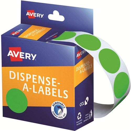 Avery Removable Dispenser Labels 24mm Round Fluoro Green Pack of 350