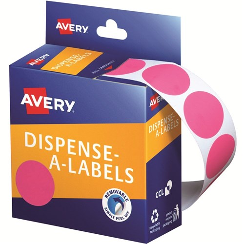 Avery Removable Dispenser Labels 24mm Round Pink Pack of 500