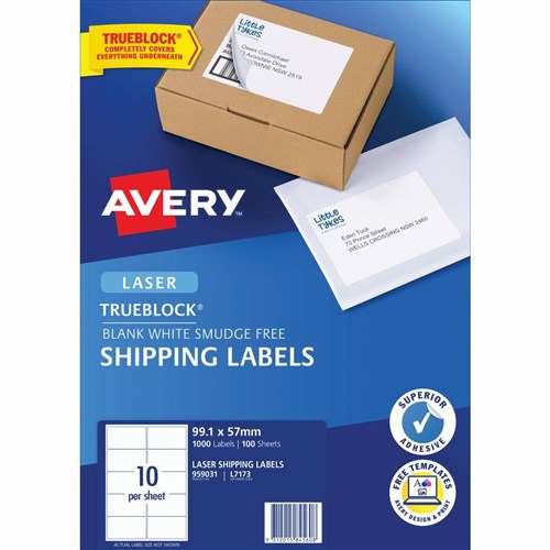 Avery Shipping Laser Labels 10UP L7173 99.1 x 57mm White TRUEBLOCK, 100 Sheets