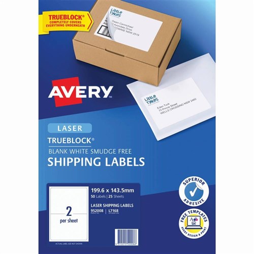 Avery Shipping Laser Labels 2UP L7168 199.1 x 143.5 White TRUEBLOCK, 25 Sheets