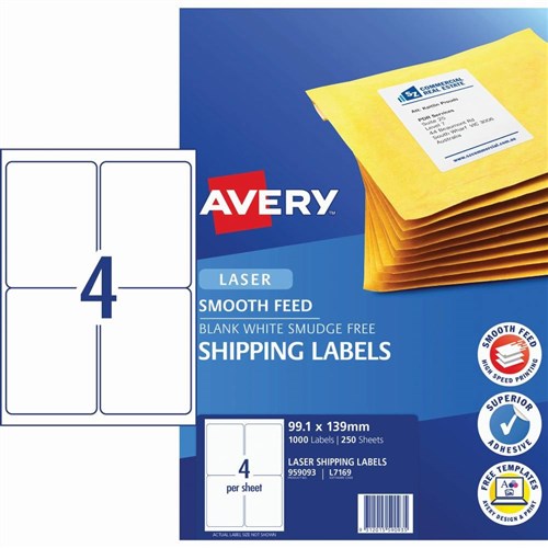 Avery Shipping Laser Labels 4UP L7169 99.1 x 139mm White 250 Sheets