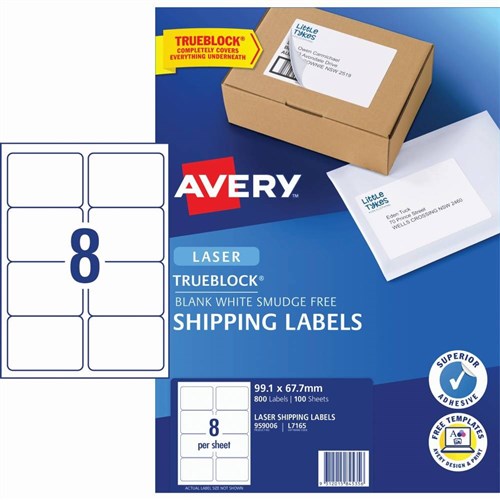Avery Shipping Laser Labels 8UP L7165 99.1 x 67.7mm White TRUEBLOCK, 100 Sheets