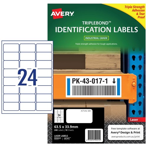 Avery TripleBond Laser Labels L6141 63.5 x 33.9mm White 24UP 10 Sheets