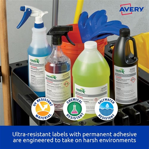 Avery Ultra-Resistant Chemical Grade Laser Labels L7912 63.5x 33.9 White 24UP 10 Sheet