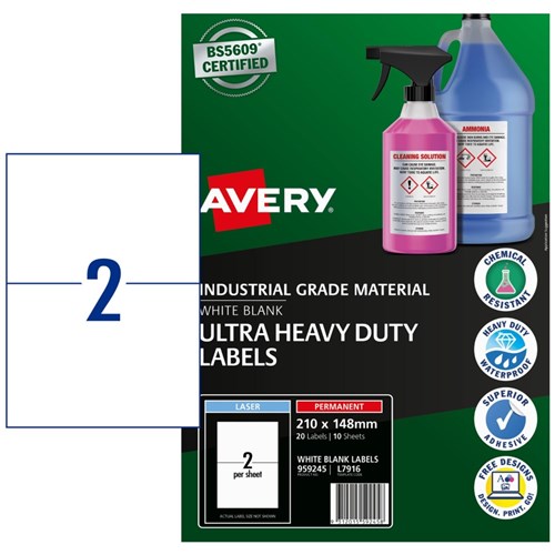 Avery Ultra-Resistant Chemical Grade Laser Labels L7916 210x 148 White 2UP, 10 Sheets