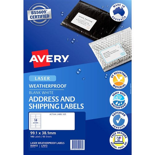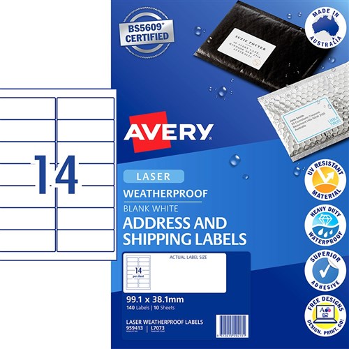 Avery Weatherproof Shipping Laser Labels L7073 99.1x38.1mm White 10 Sheets 14UP