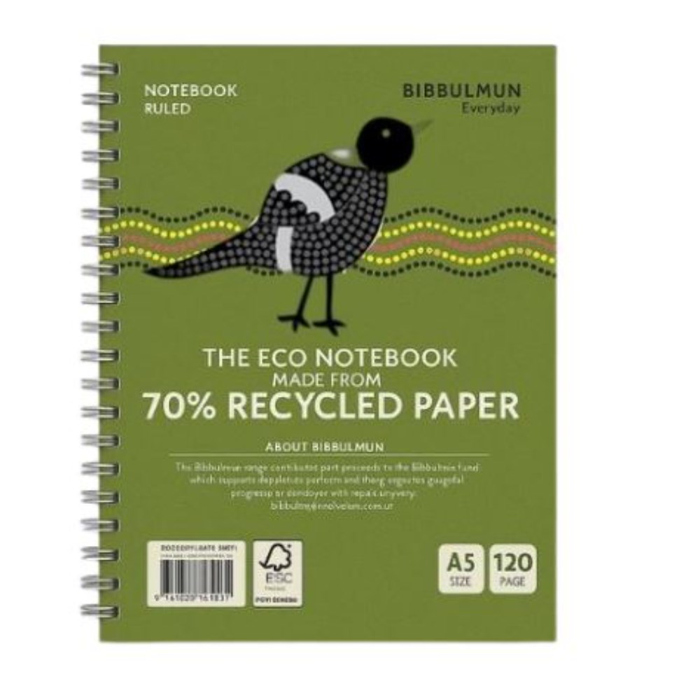 Bibbulmun Recycled 70% Eco Green Notebook A5 Ruled 120 Page