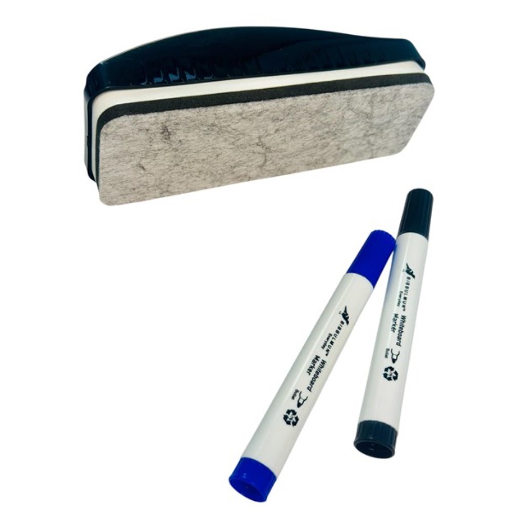 • Includes 2 whiteboard markers. Black and blue bullet tip for smooth and clear writing.