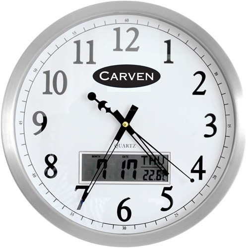 Carven Wall Clock 35cm LCD Calendar Aluminium Frame