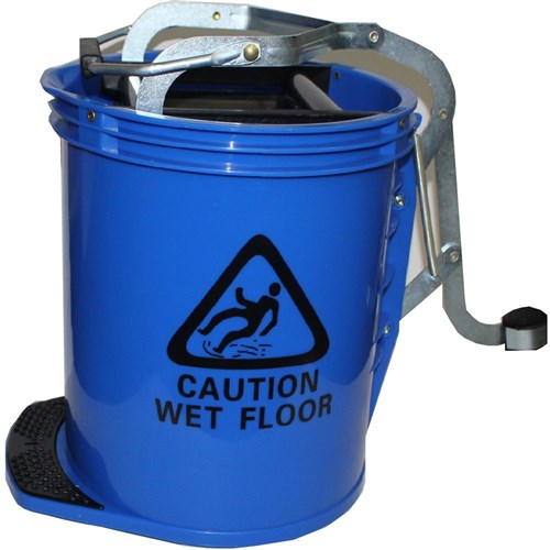 Cleanlink Heavy Duty Plastic Mop Bucket Metal Wringer 16L Blue