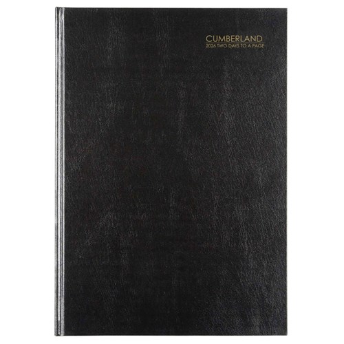 CUMBERLAND CLASSIC DIARY 2 Days To Page Casebound A4 Black