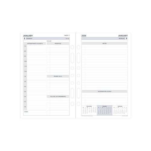 Debden Dayplanner Refill 2 Pages To A Day 140X216mm