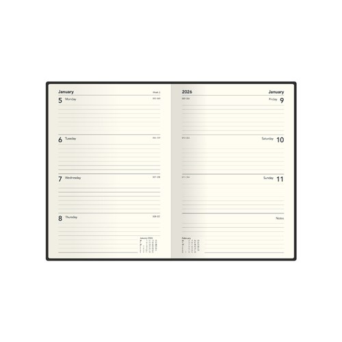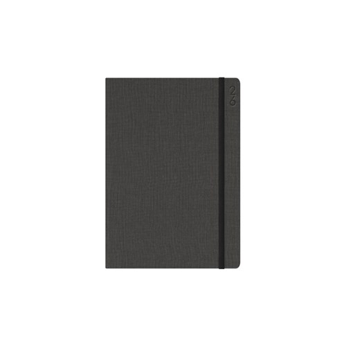 Debden Designer Diary Week To View A5 Textured Fabric Charcoal 2025