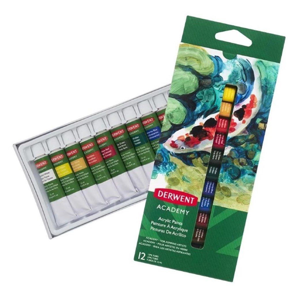DERWENT ACADEMY ACRYLIC PAINT TUBES 12ml, Pack of 12 **clearance**
