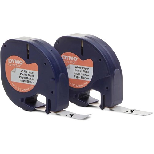 DYMO 10697 LetraTag Labelling Tape 12mmx4m Paper White Pack of 2