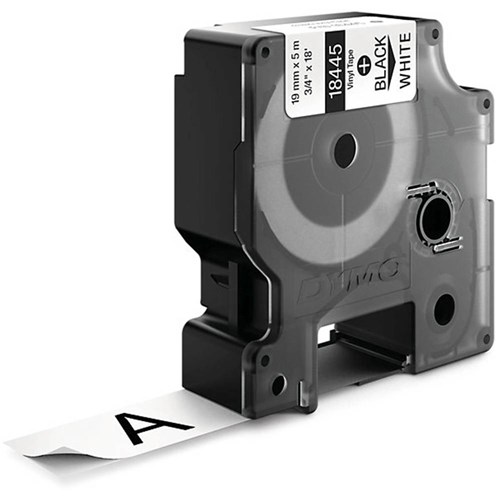 Dymo 18445 Rhino Industrial Labels 19mmx5.5m Vinyl Black on White