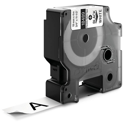 Dymo 18489 Rhino Industrial Labels 19mmx3.5m Nylon Black on White