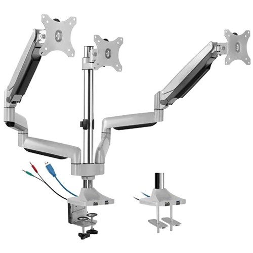 EMA10 Series Triple Monitor Arm Slim Aluminium with Cable Channel and USB Silver Black