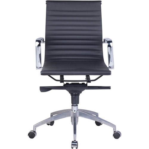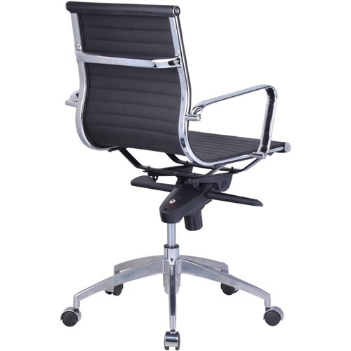 PU605M Medium Back Executive  Chair Chrome Base and Arms Black Ribbed PU Seat and Back