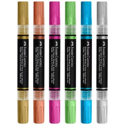 Faber-Castell Black Edition Shake & Paint Markers Bullet Metallic Assorted Set Of 6