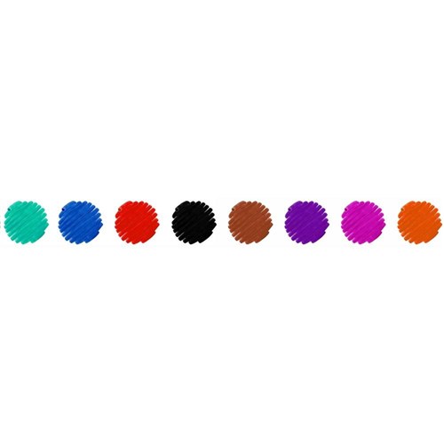 • 8 bright, vibrant colours in Red, Pink, Orange, Green, Blue, Violet, Brown and Black
