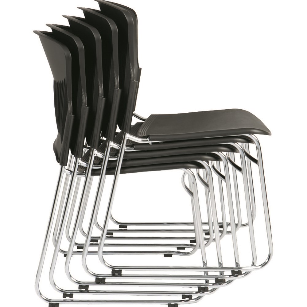 Focus Chair No Arms Chrome Sled Base Black Plastic Seat