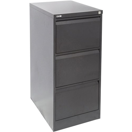 Go Steel 3 Drawer Filing Cabinet 1016Hx460Wx620mmD Black Ripple