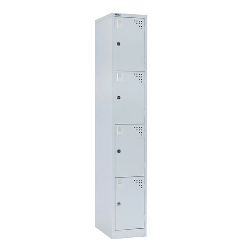 Go Steel Storage Locker Four Door 1830Hx380Wx455mmD Silver Grey