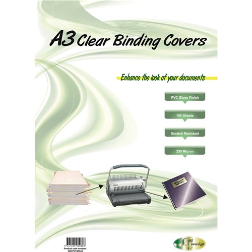 Gold Sovereign Heavy Duty Binding Covers 250 micron A3 Clear Pack of 100