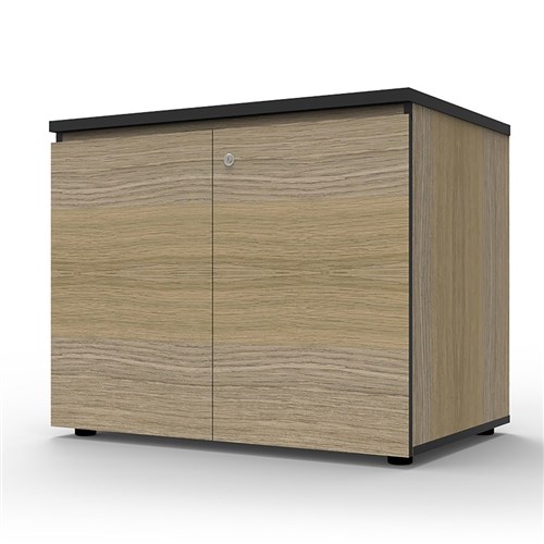 Infinity Swing 2 Door Storage Cupboard 900W x 600D x 730mmH Natural Oak with Black Edge