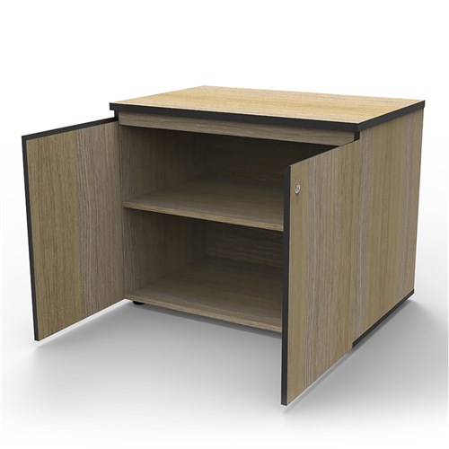 • Infinity Swing 2 Door Storage Cupboard 900W x 600D x 730mmH Natural Oak with Black Edge