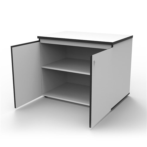 Infinity Swing 2 Door Storage Cupboard 900W x 600D x 730mmH Natural White with Black Edge
