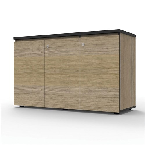 Infinity Swing 3 Door Storage Cupboard 1200W x 450D x 730mmH Natural Oak with Black Edge